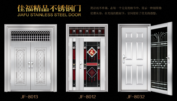 本公司成立于2004年,已有19年的生產(chǎn)進(jìn)戶門的經(jīng)驗(yàn)積累。公司現(xiàn)擁有鋼質(zhì)非標(biāo)門生產(chǎn)線、標(biāo)門生產(chǎn)線及不銹鋼門三條生產(chǎn)線,我公司專業(yè)設(shè)計(jì)、制造、銷售鋼質(zhì)系列進(jìn)戶門、防盜門、不銹鋼門等產(chǎn)品,擁有“宇佳?盈福”和“佳有福”、“家福.興隆”三個(gè)自主品牌和產(chǎn)品系列。公司引進(jìn)了先進(jìn)的生產(chǎn)技術(shù),配置了成龍配套的現(xiàn)代化生產(chǎn)流水線。產(chǎn)品工藝成熟,質(zhì)量上乘。同時(shí),公司廣納賢才,聚集了一批具有開拓創(chuàng)新精神的各類高級管理和技術(shù)人才,建立了一套先進(jìn)的管理模式。